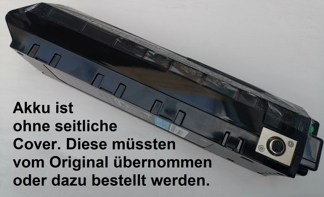 Akku ist ohne seitliche Cover. Diese müssten dazu bestellt werden. Siehe unten.
