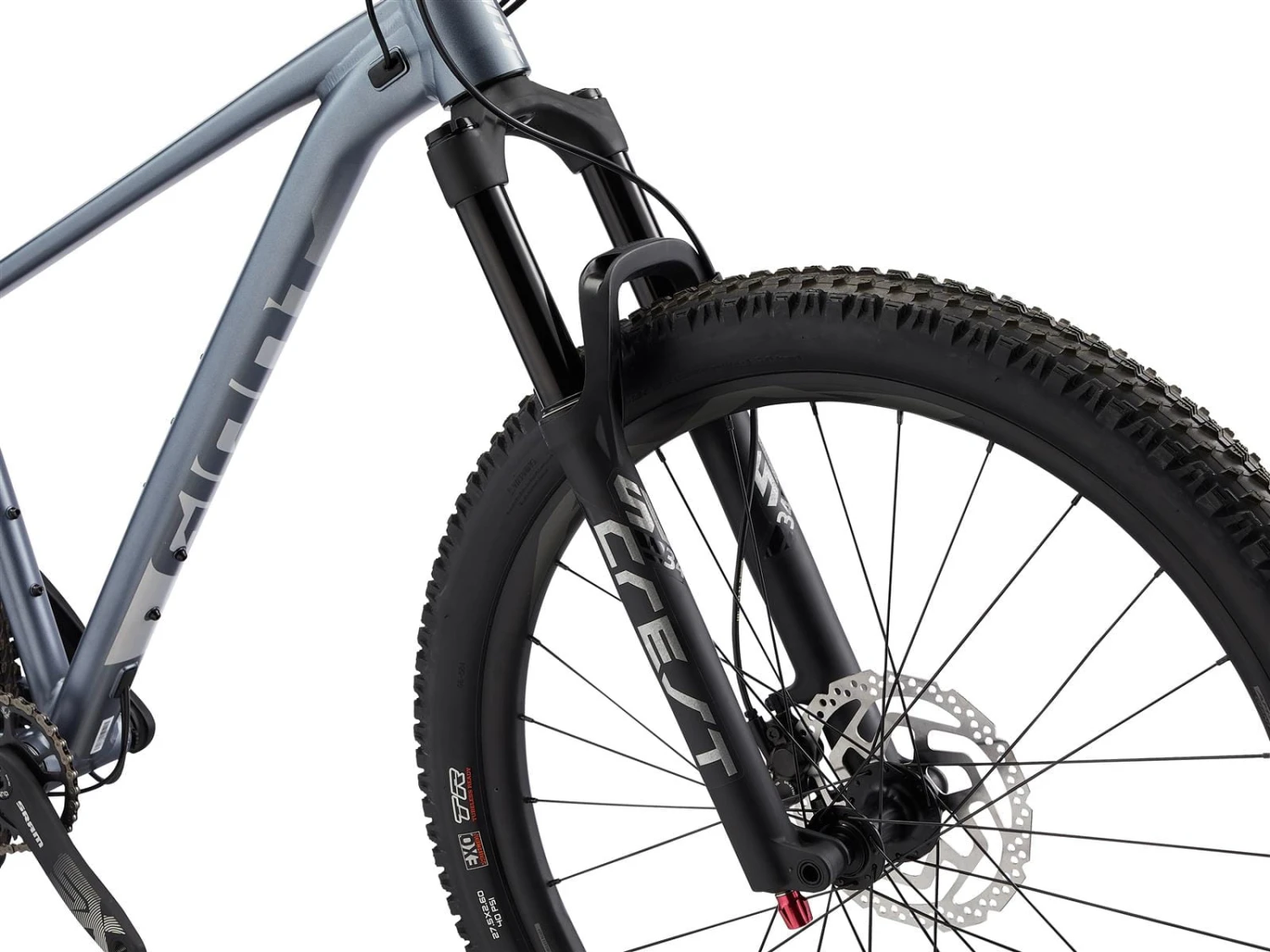 Die Giant Crest 34 Federgabel mit 130 mm Federweg absorbiert Wurzeln, Felsen und Spurrillen. Die griffigen, großvolumigen Reifen verbessern die Traktion in rauem Terrain. Mit der Dropper-Sattelstütze mit Lenkerfernbedienung kannst du die Sattelhöhe im Handumdrehen verstellen, um dich auf wechselndem Terrain sicher zu positionieren.