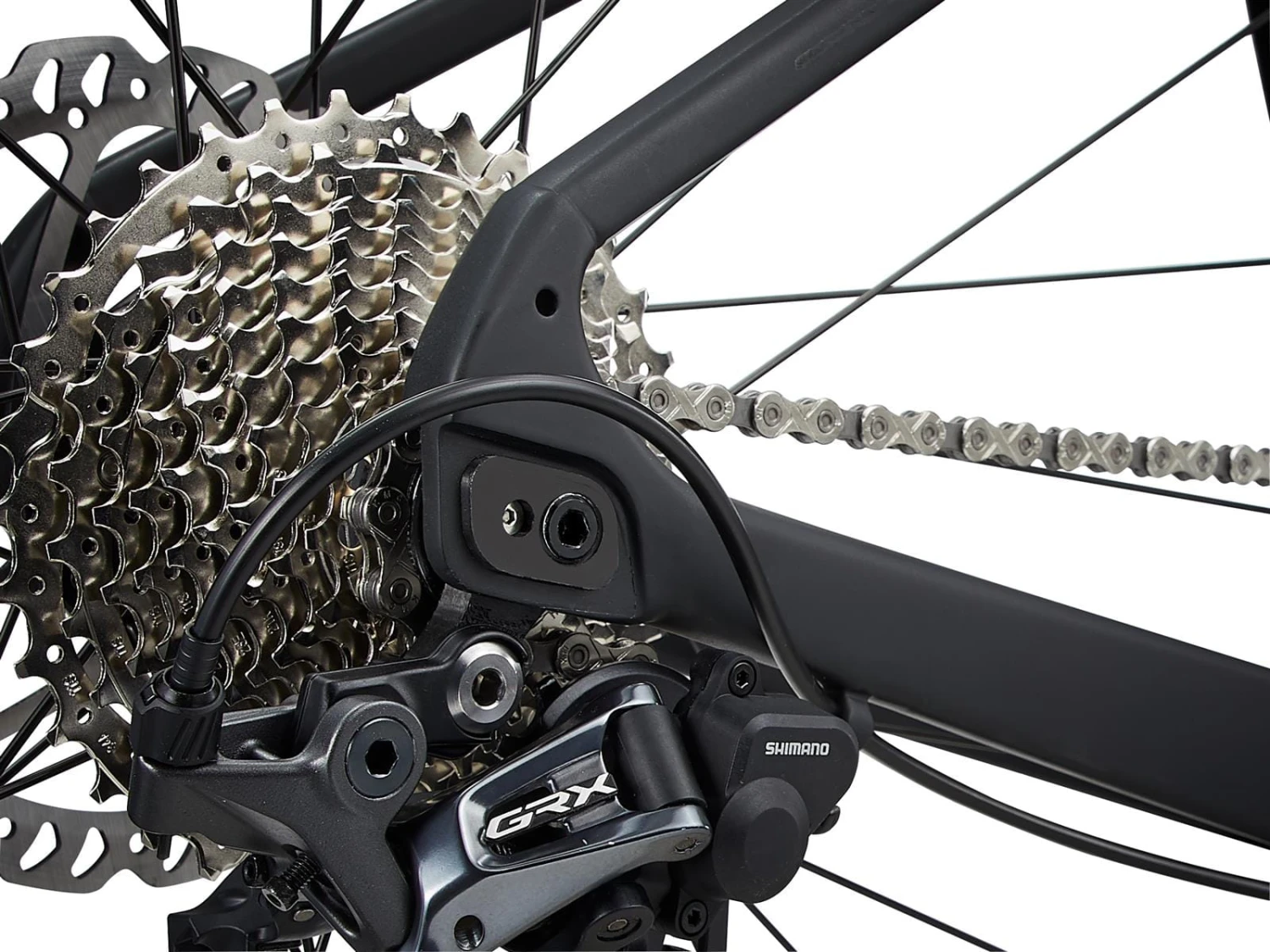 Mit einem Flip-Chip am hinteren Ausfallende lässt sich der Radstand einstellen: kurz für agileres Handling oder lang für mehr Stabilität auf rauen Straßen und Schotter. Die lange Einstellung ermöglicht die Verwendung von Reifen mit einer Breite von bis zu 53 mm. Du kannst die mitgelieferte D-Fuse-Sattelstütze für maximale Nachgiebigkeit wählen oder auf eine runde 30,9-mm- oder eine Dropper-Stütze umsteigen.